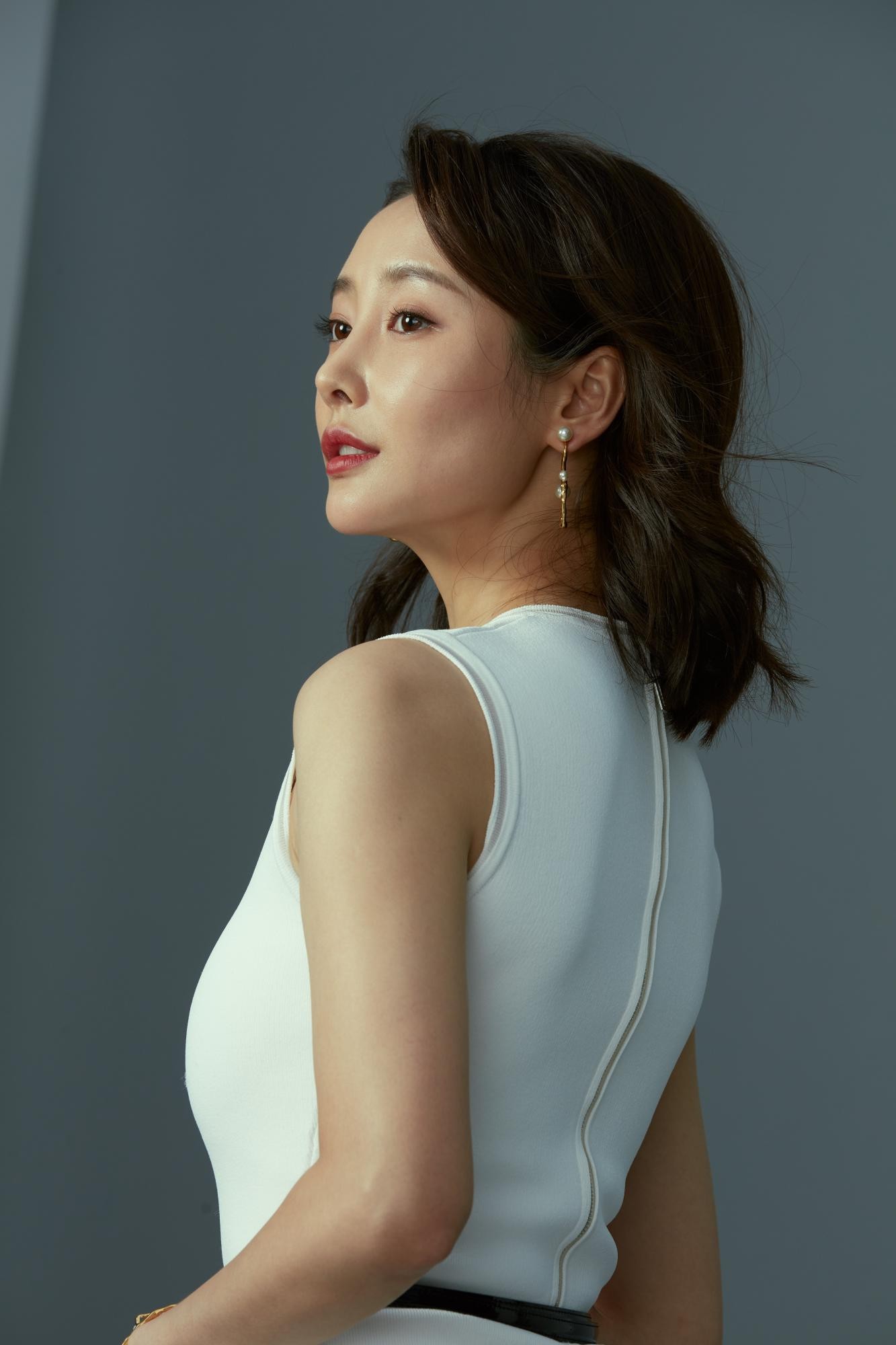 除了面部表情,她的肢体语言也同样值得品味。无论是单手轻抚后颈时展现的修长手臂线条,还是随意交叠双腿时流露的放松与自信,都显得舒展而有力。这些动作并未刻意追求“性感”的展示,而是在自然的状态下,由内而外散发的身体自信与掌控感。这正是现代女性魅力最动人的部分——自知、自在且自洽。