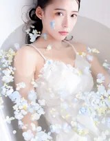 当这样的睡裙与浴室的水环境相遇,魔法便发生了。水,是这组写真的关键催化剂。它打湿发梢,让几缕黑发随意地贴在额前与颈边,平添一抹不经意的慵懒与风情。它浸透轻薄的裙衫,使原本就柔软贴身的布料更为紧密地依附于肌肤之上,如水墨晕染般半透明地展现出曼妙的身姿轮廓,水的灵动与身体的静美形成美妙的对比。摄影师巧妙利用浴缸的水面、玻璃上的雾气以及流动的水珠,营造出一个私密、梦幻且充满情绪感的蓝色世界。在这里,湿身不再是狼狈,而是一种出浴芙蓉般的纯净与性感碰撞,是“纯欲系”风格的巅峰表达。